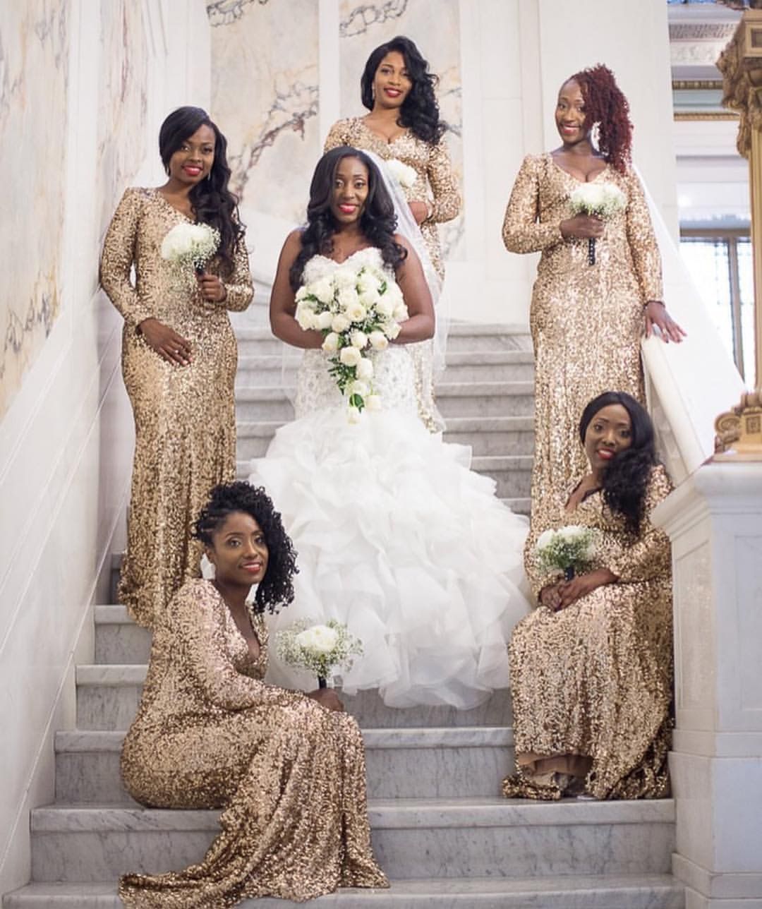 Bling Bling Gold Sequin Long Sleeve Wedding Guest Formal Wear Evening Gowns 2019 Arabic Plus Size Bridesmaid Dresses Floor Length Cheap Sexy Cheap