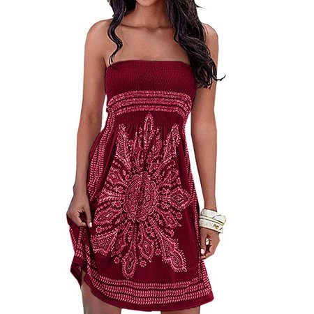 Women S Summer Dress Strapless Floral Print Bohemian Casual Mini Beach Dress Cover Ups