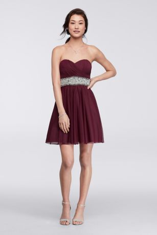 Short Strapless Dress With Richly Beaded Waist