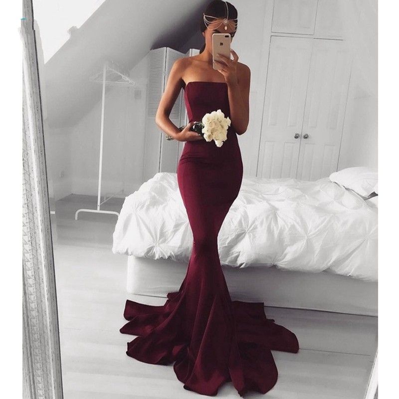 Simple Burgundy Prom Dresses For Graduation 2017 Strapless Maroon Prom Dressess Mermaid Backless Custom Evening Dress Cheap Topshop Evening Dresses