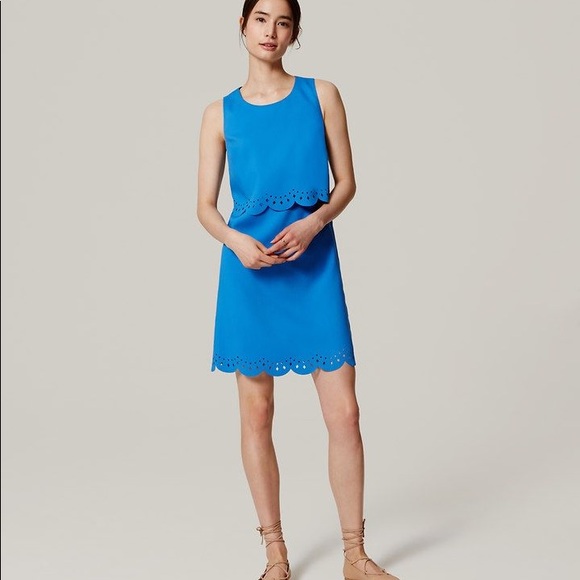 Loft Scallop Hem Blue Laser Cut Overlay Dress