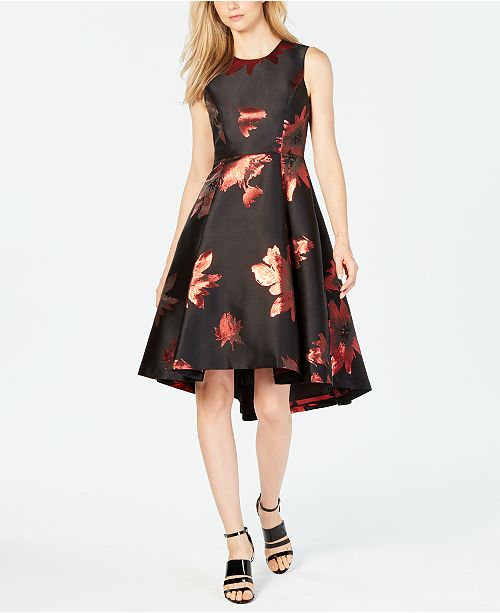 Calvin Klein Women S Floral Border Metallic Fit Flare Dress Capri Multi