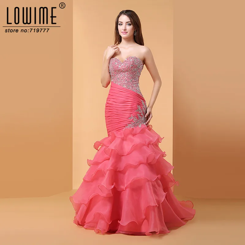 Watermelon Color Women Evening Dresses Real Image Off The