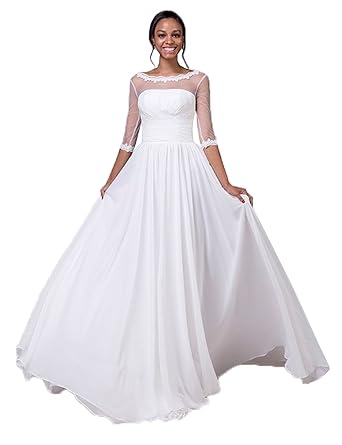 Sheath Column V Neck 3 4 Sleeves Chiffon Floor Length Wedding Dresses