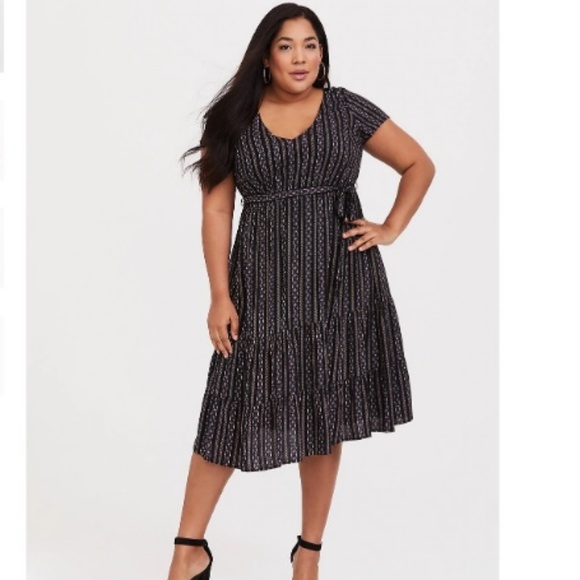 Nwt 2x 4x Black Dot Stripe Challis Midi Dress Nwt