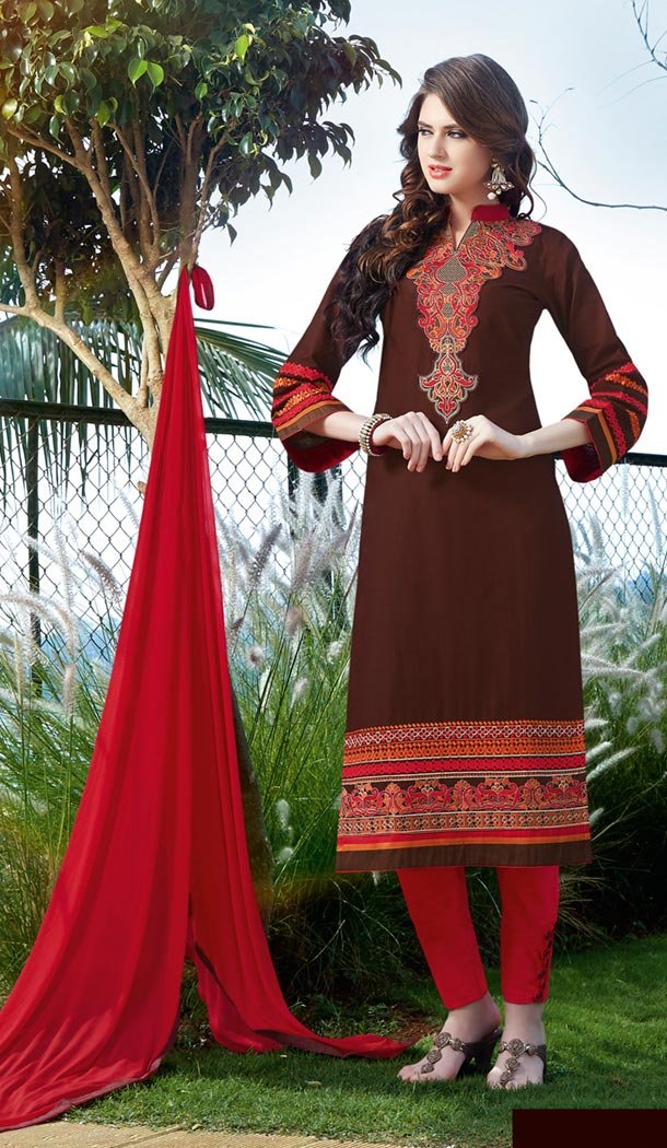 Chocolate Color Cotton Online Pakistani Casual Dresses For Women Fh427068043
