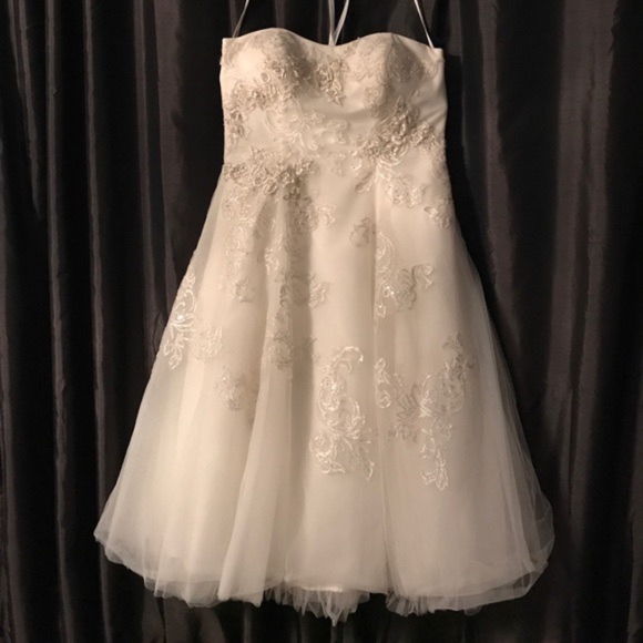 Oleg Cassini Cpk437 Tea Length Wedding Gown Sz 12