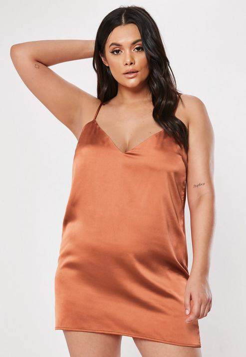Plus Size Rust Co Ord Satin Slip Dress