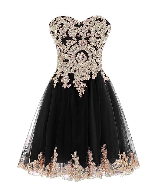 Himoda Women S Sweetheart Gold Lace Homecoming Dresses S Prom Gowns Short H08