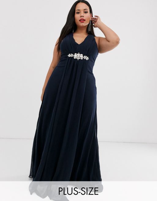 City Goddess Plus V Neck Embellished Chiffon Maxi Dress