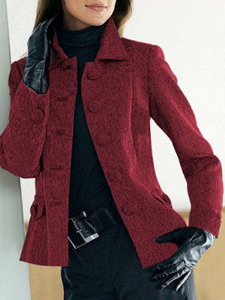 Solid Buttoned Pockets Jacket Plus Size Shawl Collar Coat