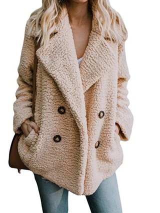 Coat Plus Size Shawl Collar Long Sleeve Solid Coat