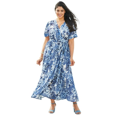 Plus Size Wrap Maxi Dress In Crinkle