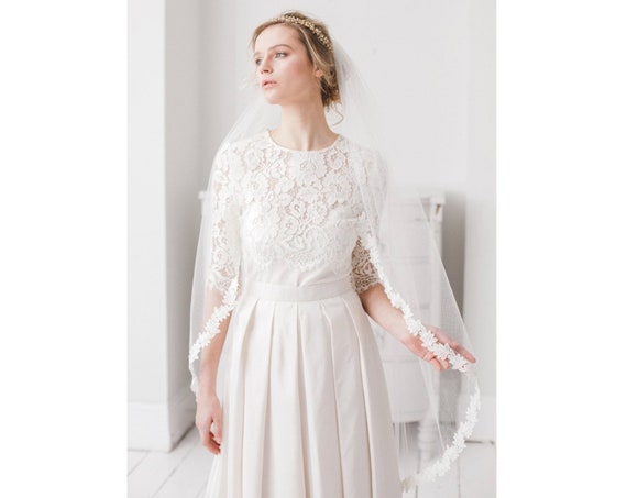 Lace Leaf Wedding Veil Semi Edge Leaf Lace Wedding Veil Leaf Lace Wedding Veil Ivory Wedding Veil