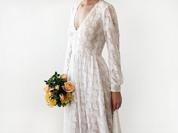 Leaf Lace Wedding Dress Long Sleeve Lace Wedding Dress V Neck Long Sleeve Wedding Dress Bishop Sleeve Wedding Dress 1208