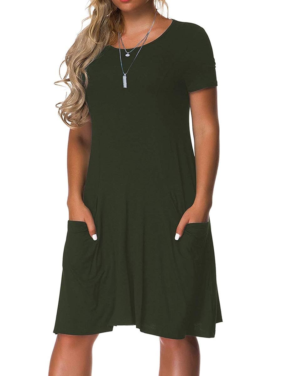 Verabendi Women S Plus Size Long Short Sleeve Dress Casual Loose Pocket T Shirt Dress