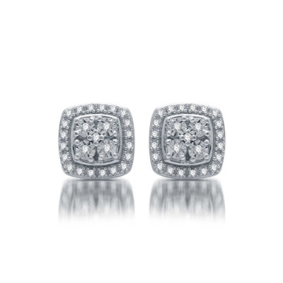 Limited Time Special 1 10 Ct T W Genuine Diamond Stud Earrings In Sterling Silver