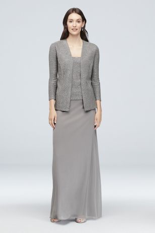 Textured Glitter Knit And Mesh Gown With Jacket